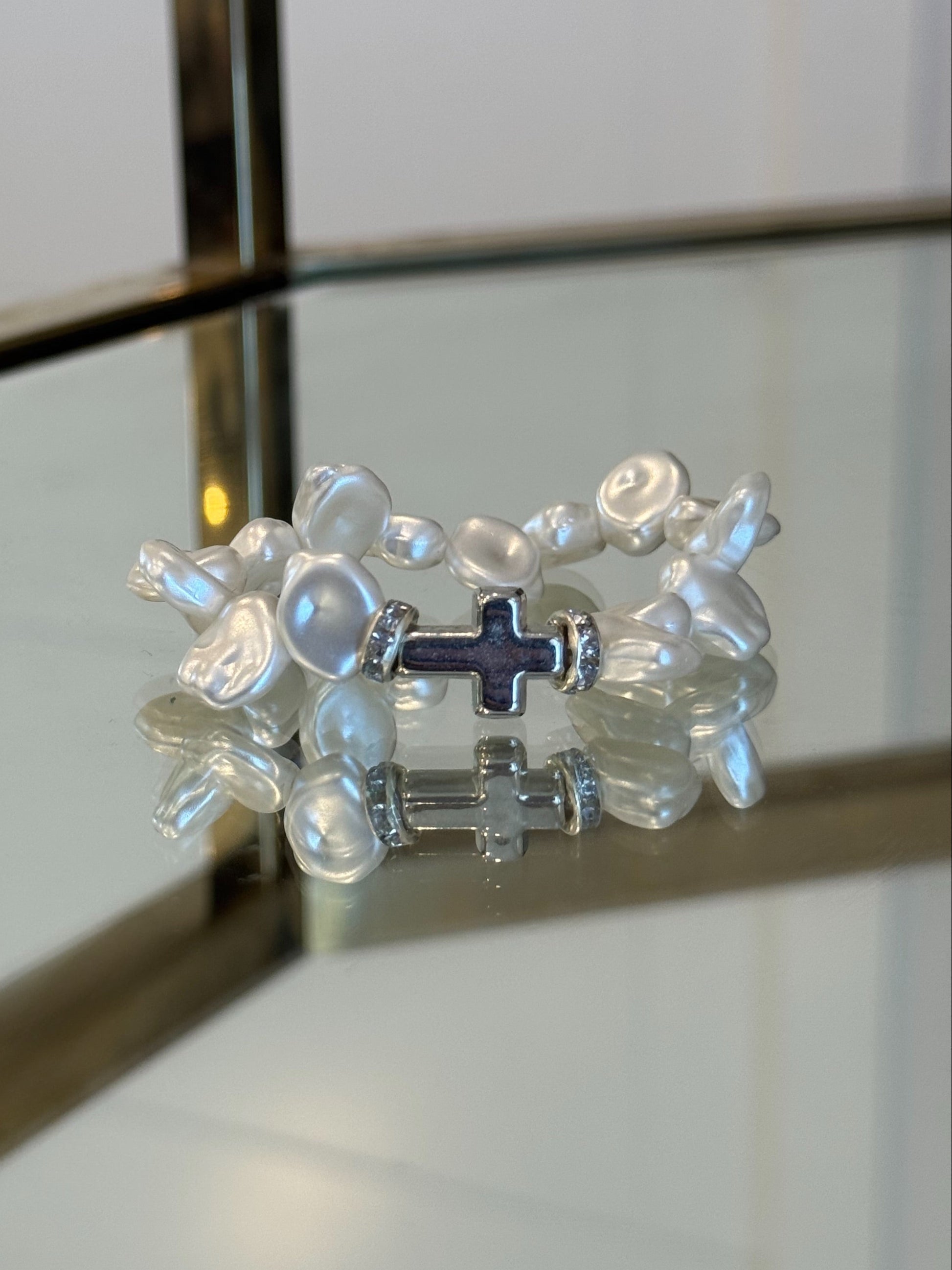 Pearls of Mary Silver Cross Charm Bracelet